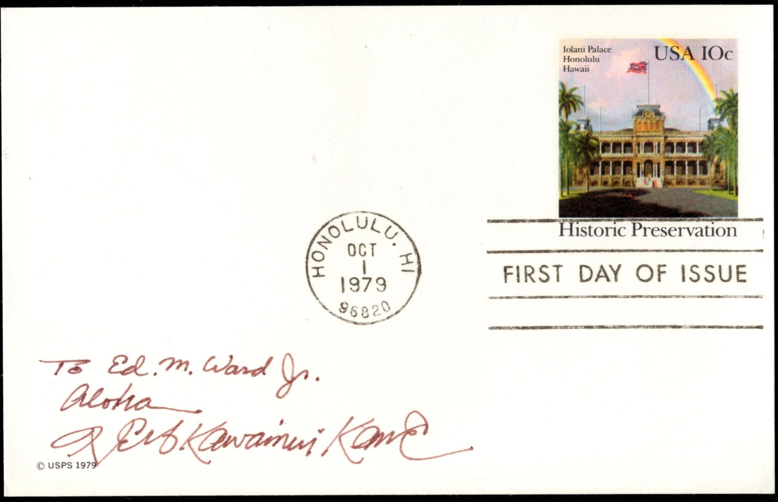 US 1979 (Oct 1) UX81 FDC signed by the Designer, Herb K. Kāme