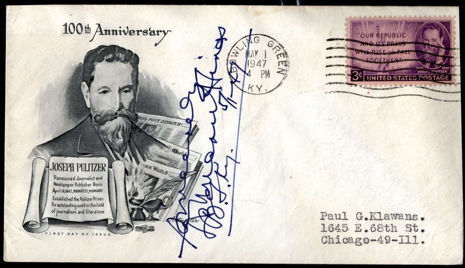 US 946 Cover Signed By Duncan Hines, Author & Food Critic. PMK May 1, 1947