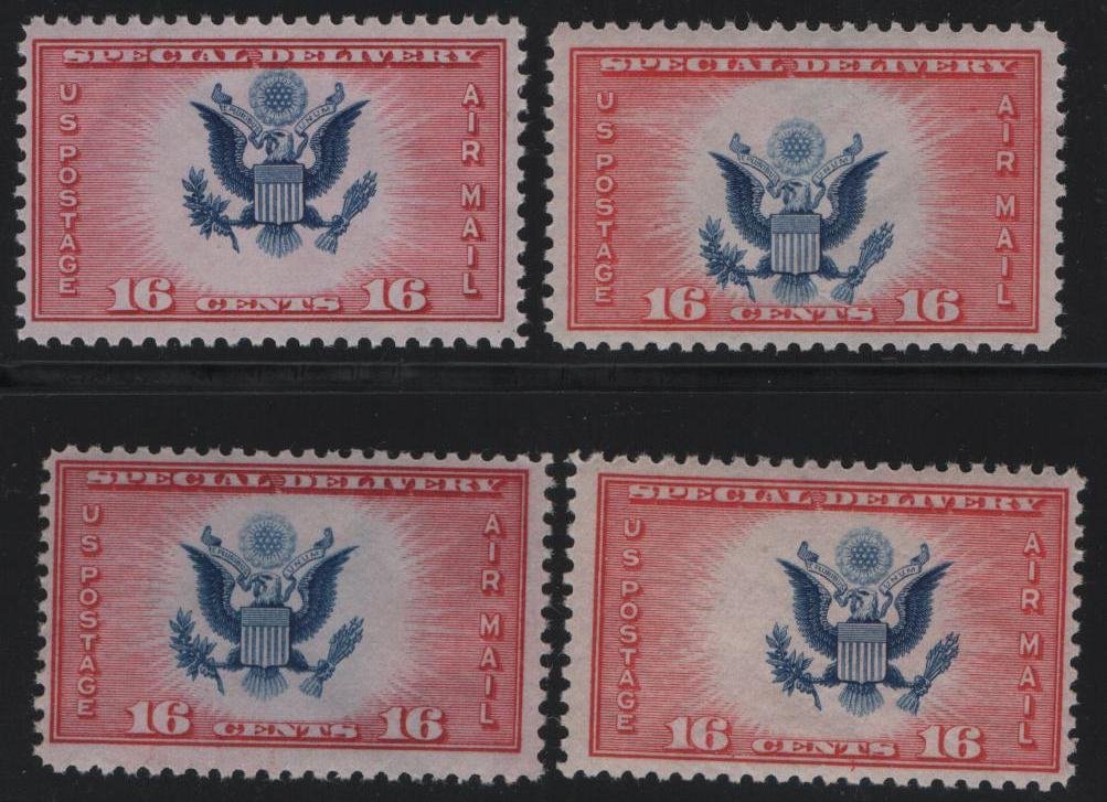 US Airmails #CE2 variety NH F-VF Matched blue vignette shifts in 4 different directions.