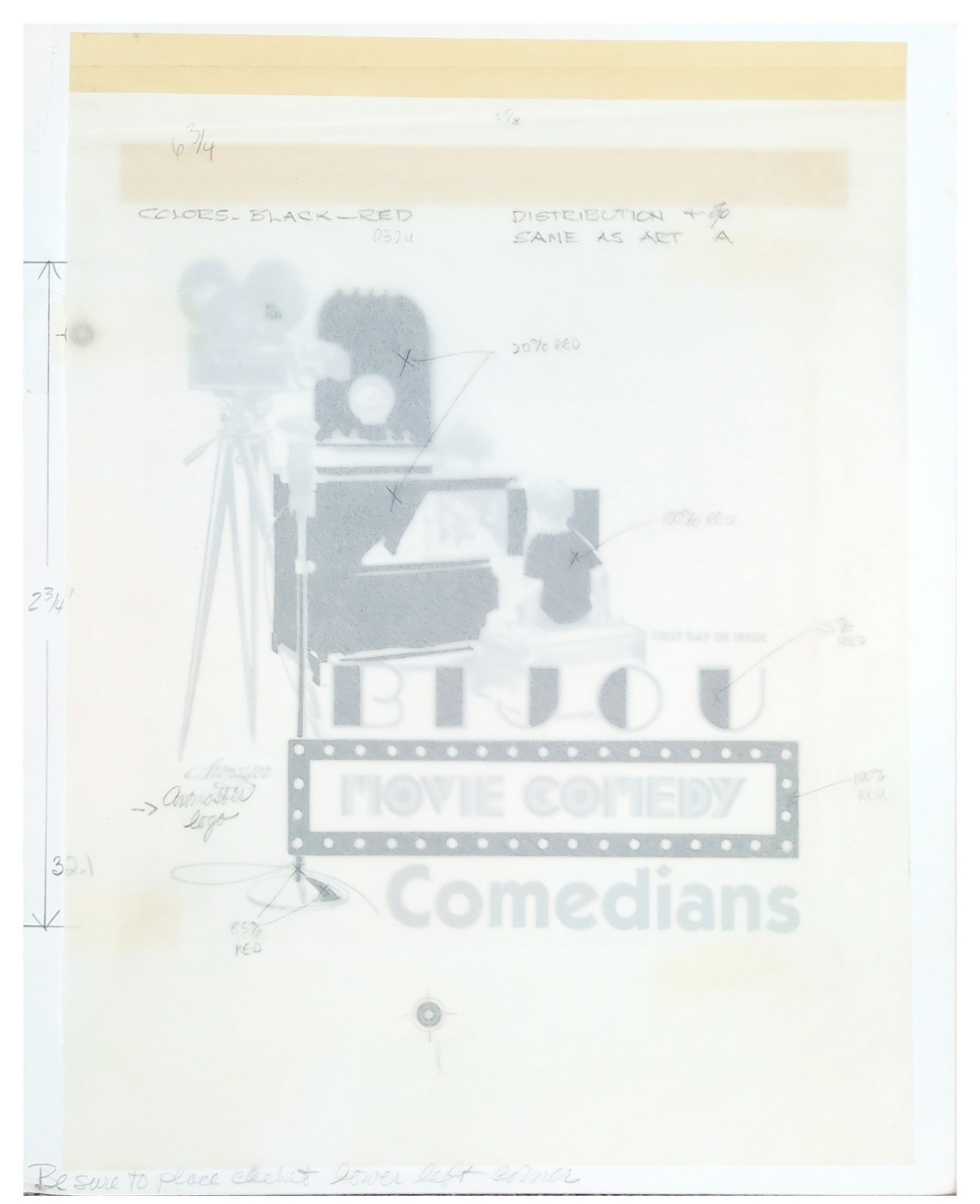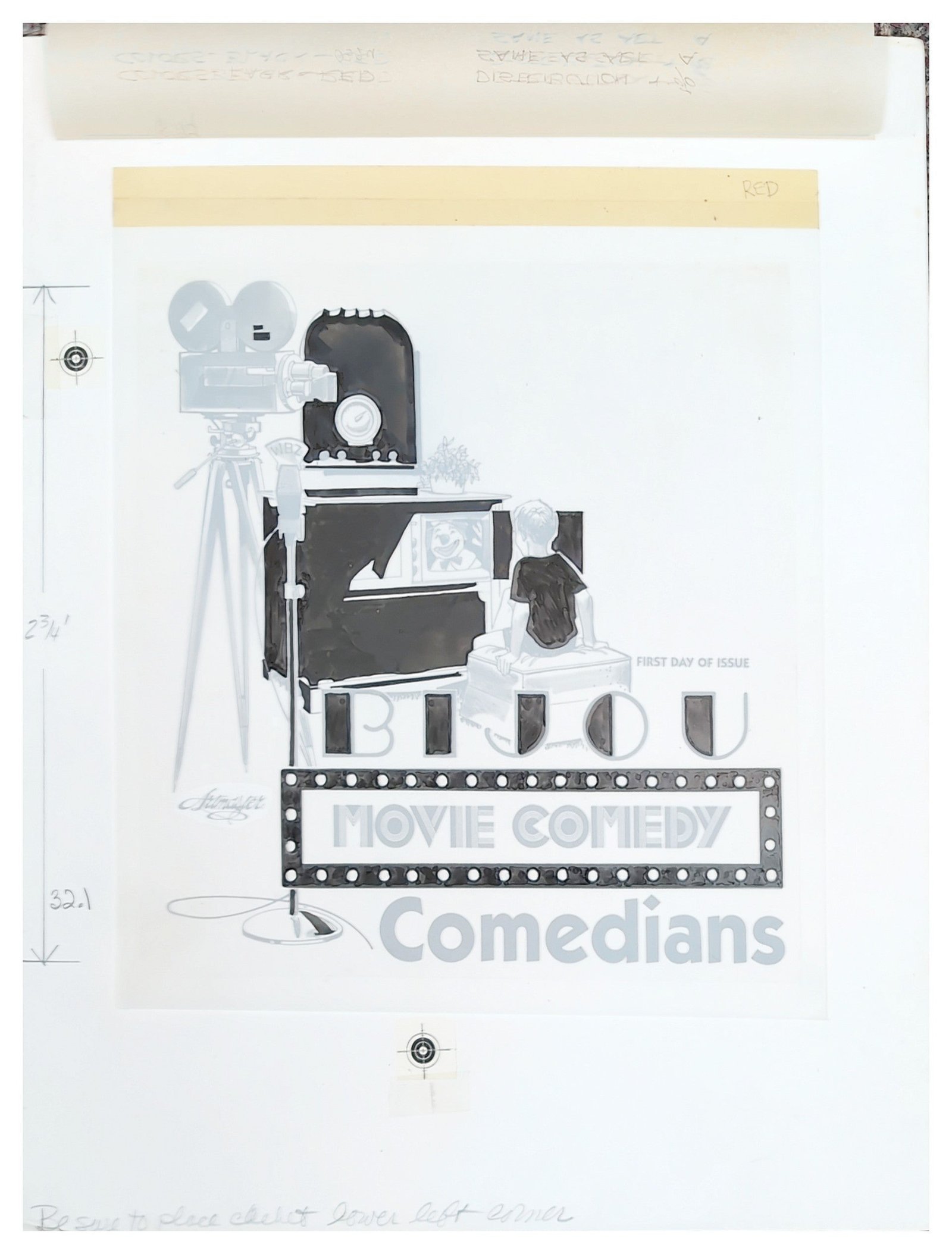 US Artmaster Scott 2562-66 Cinema – Comedians Vertical Cachet Artwork on artboard, 12″ x 15″
