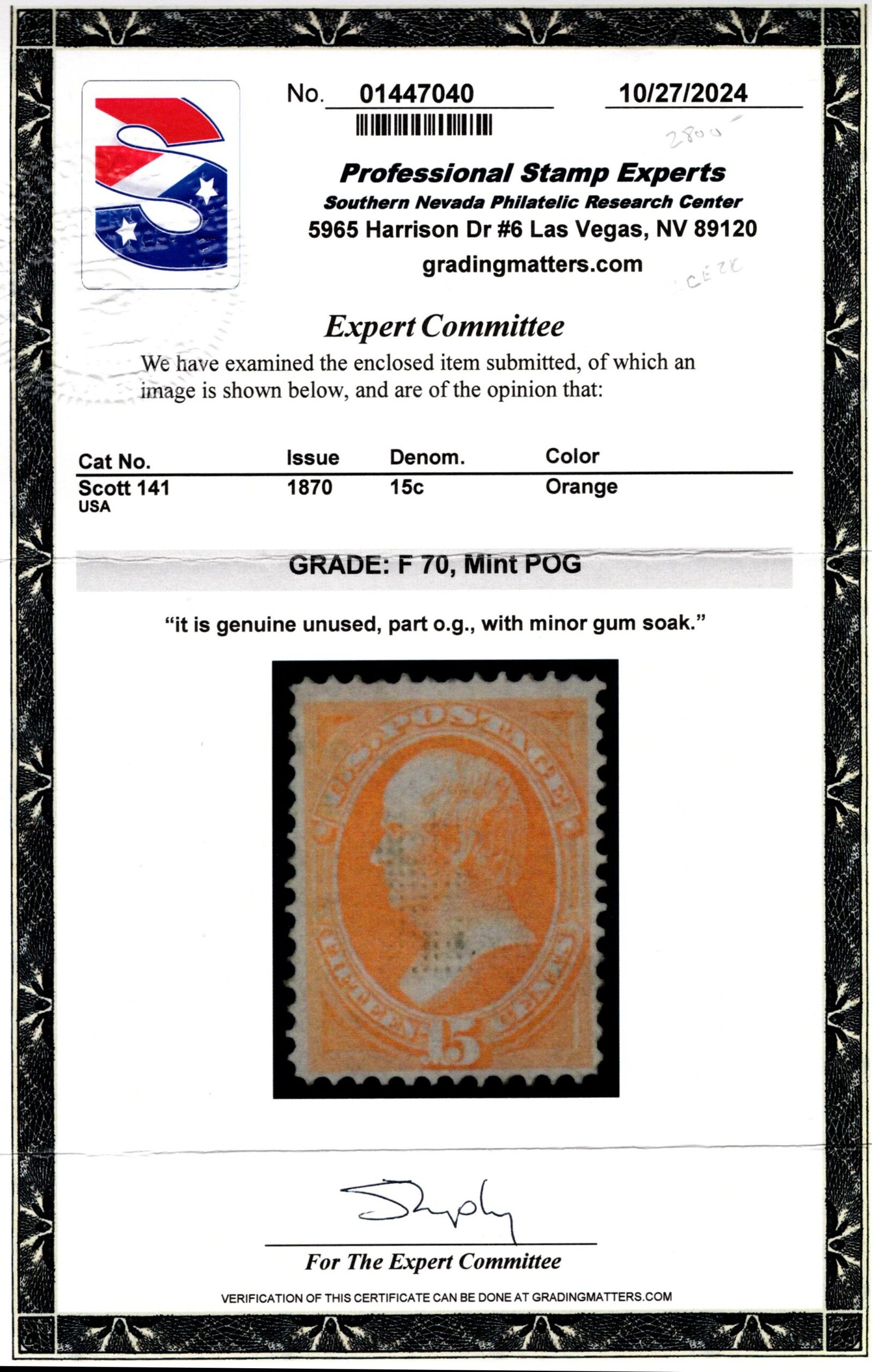 US Bank Notes #141 Mint F-VF, No Gum. PSE Cert.