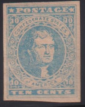 US Confederates #2a LH Mint VF OG light blue Cat Value: $300
