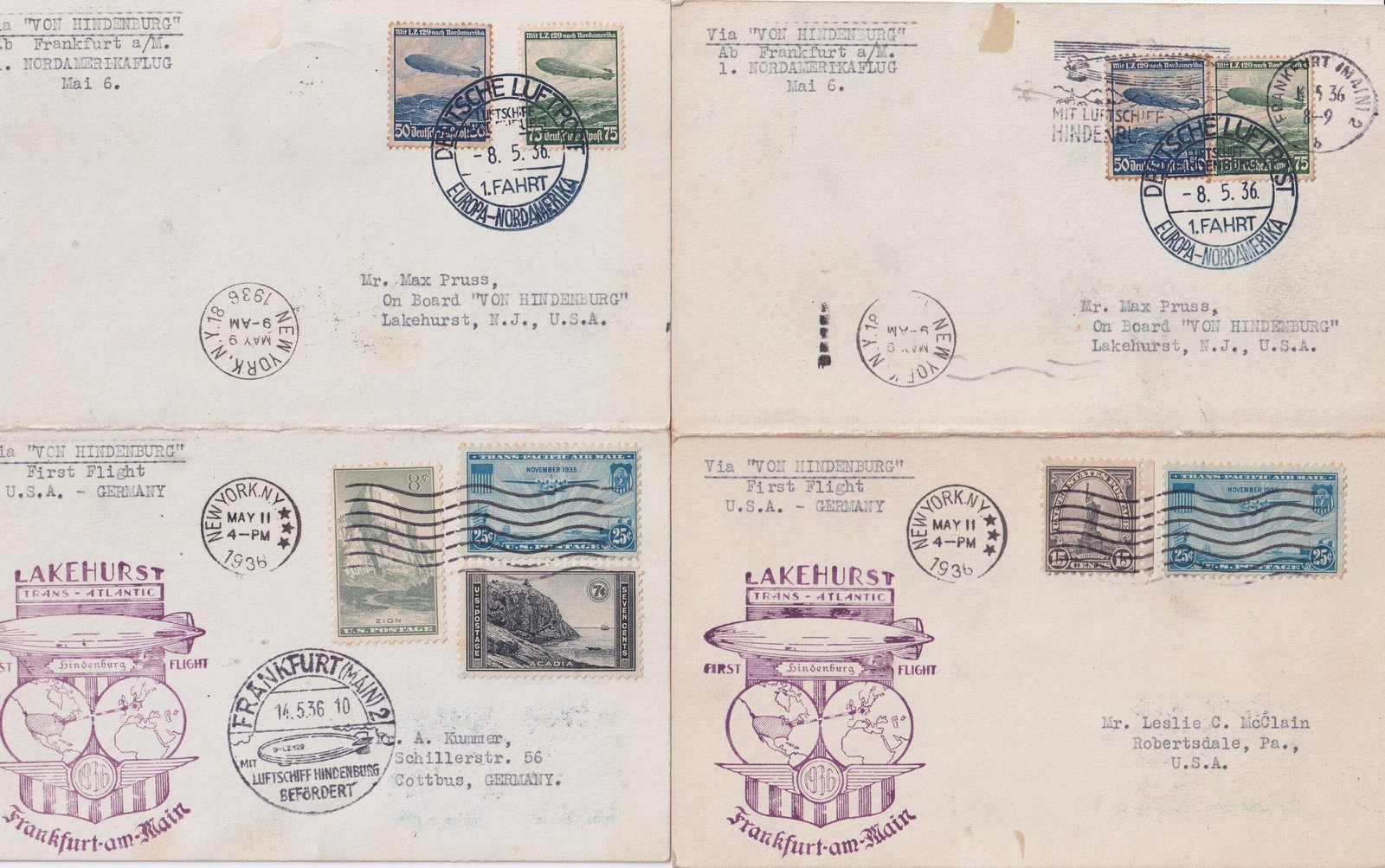 US/Germany 1936 Hindenburg Flight Unusual Private Message Reply Cardss