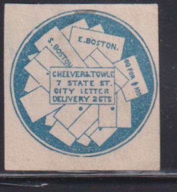 US Locals and Carriers #37L1 Mint F – VF very faint horizontal crease tiny thin spec APS cert type 2 no gum Cat Value: $600