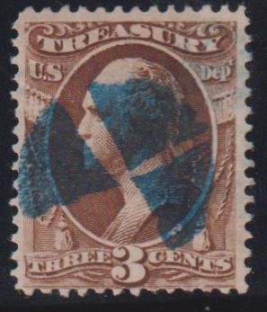 US Officials #O74 Used F unusual blue geometric