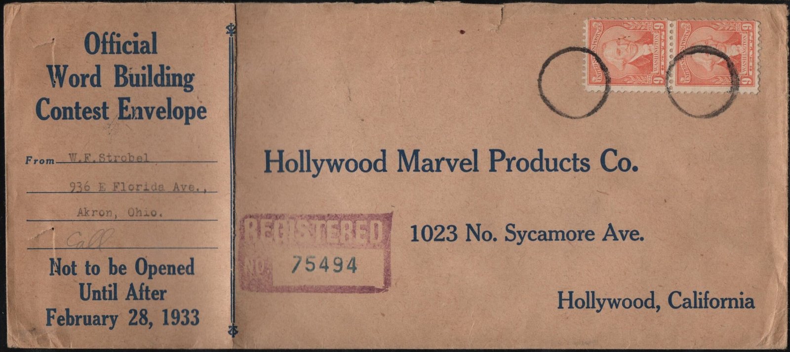 US Akron, OH 1933 (Feb28) Registered cover with 714 (x2) each tied by a single strike of N-3 fancy cancel, Circle, in black. Vertical crease where it had been neatly folded. Two staple marks on left side.