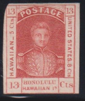 US Possessions – Hawaii #6 LH Mint F Part OG thick wove paper 2 large margins in at bottom UL Cat Value: $900