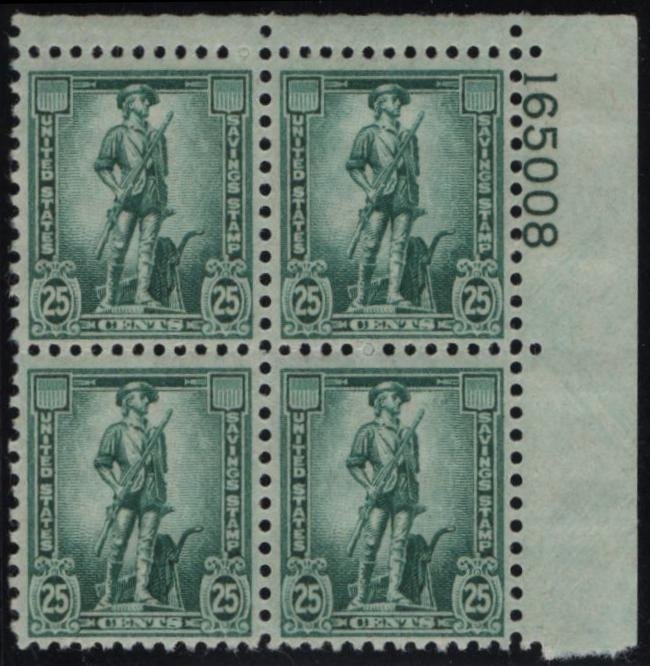 US Savings Stamps S2 NH F-VF Wet printing, plate block cv 35.