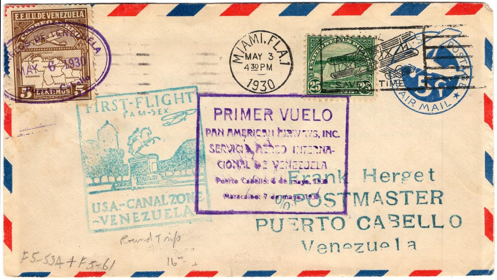 US/Venezuela 1930 1st Flight Miami – Venezuela via Canal Zone