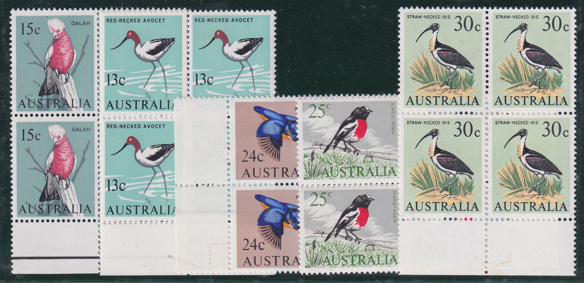 Australia 1966 #406-11 NH F-VF Blocks of 4 with Margins. The complete Bird Portion of the definitive set.