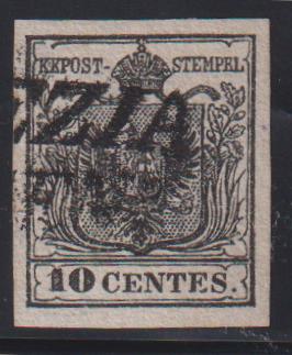Lombardy-Venetia 1850 #1b Used VF - XF yellow shade (could be lomon yellow?) Cat Value: $450
