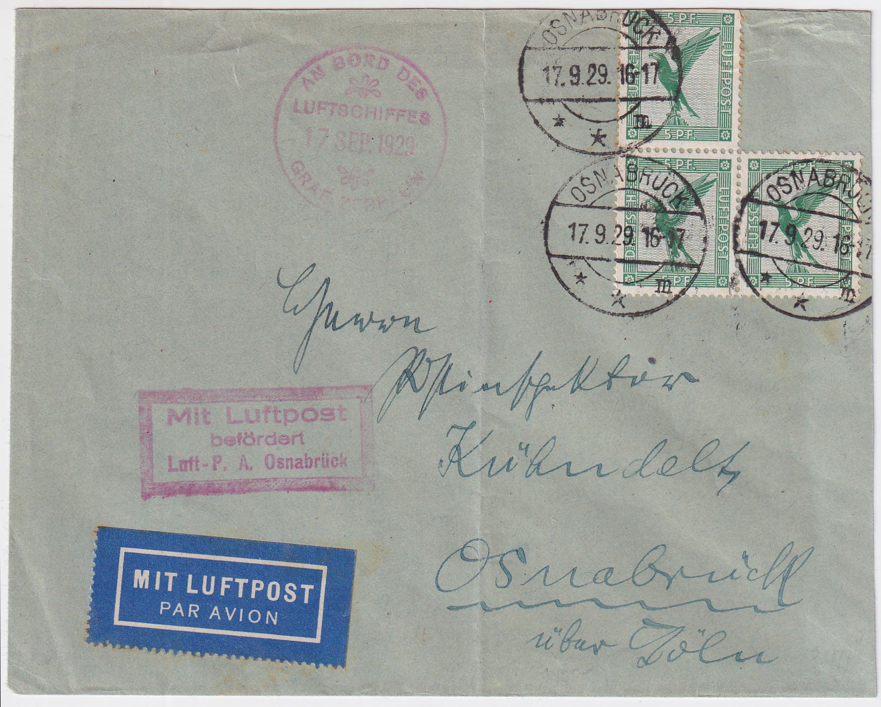 Germany 1929 German Osbrück Flight Cover with On Board Cancel. Blue envelope with vertical crease. S.34h €500