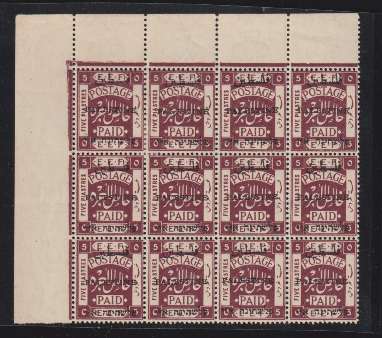 Palestine #22c NH F - VF Minor Separations x12 center row bends Cat Value: $540