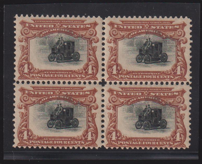 US Early Commemoratives #296 Hinged Mint F+ Block of 4 Vignette shift to UR 2.5 mm