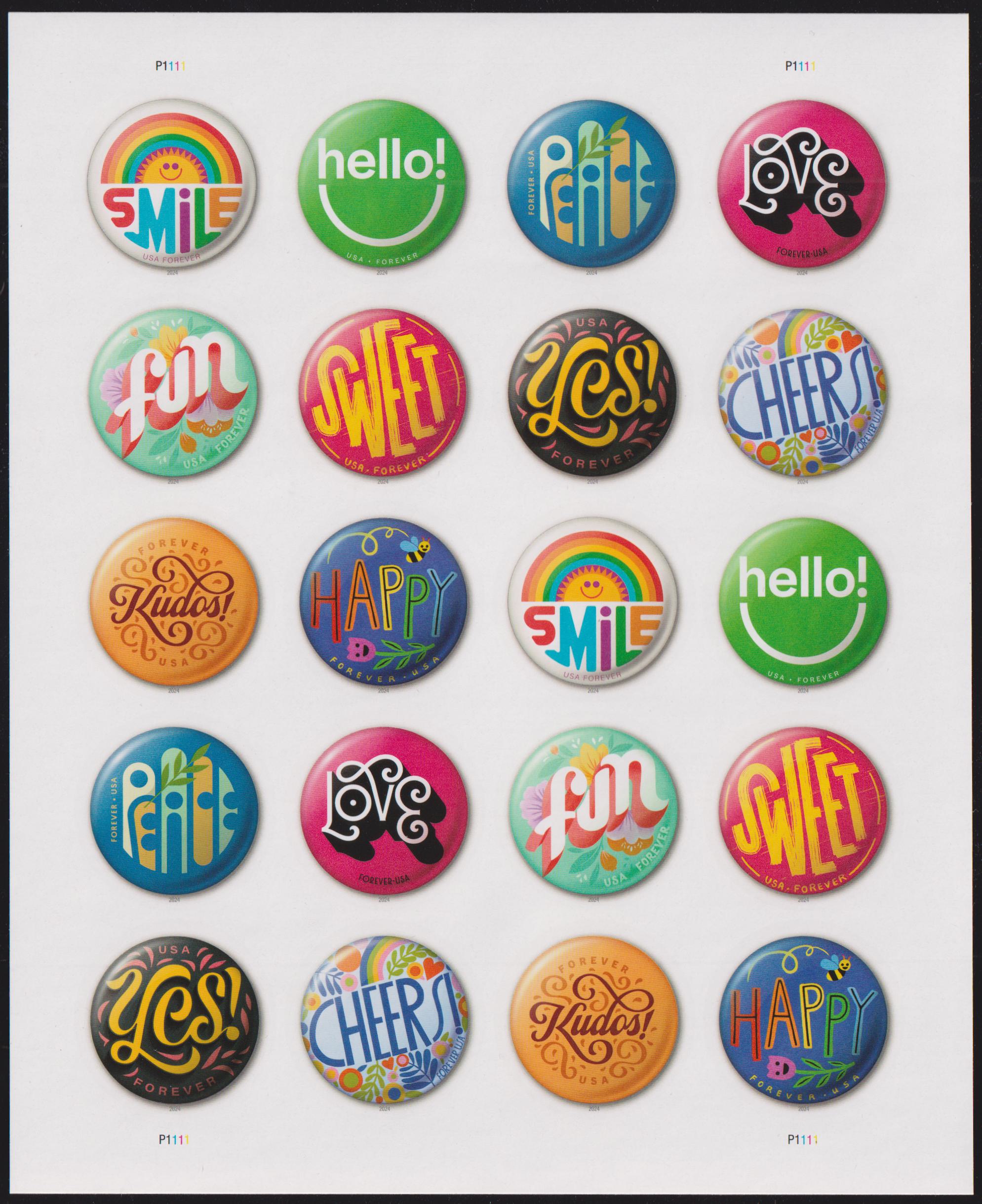 US Modern Imperfs #5919-28 Pinback Bittons Sheet