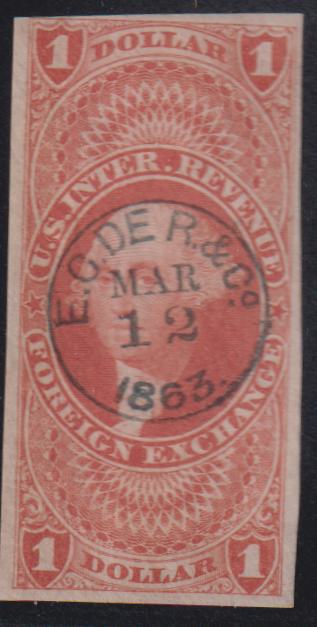 US Revenues #R68a Used F - VF 4m son 1863 date stamp Cat Value: $125