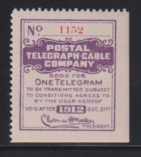 US Telegraph #15T45 LH Mint VF Cat Value: $40