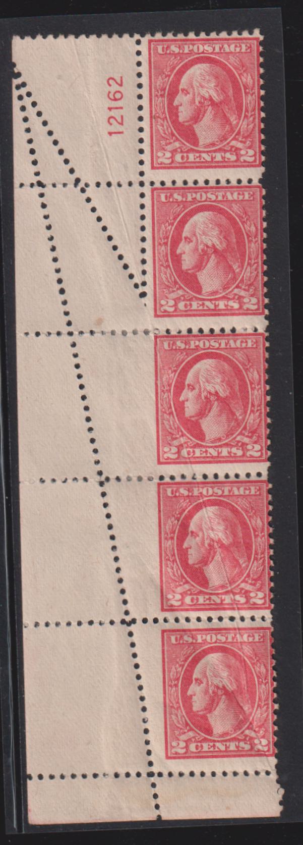 US Errors Post 1931 #528B Hinged Mint F Type VII left margins strip of 5 crazy perfs due to foldover PL12162