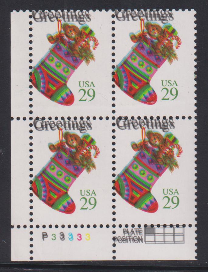 US Errors Post 1931 #2872d NH Mint F Plate # block with double black and blue colors as clearly shown in the plate# PF Cert