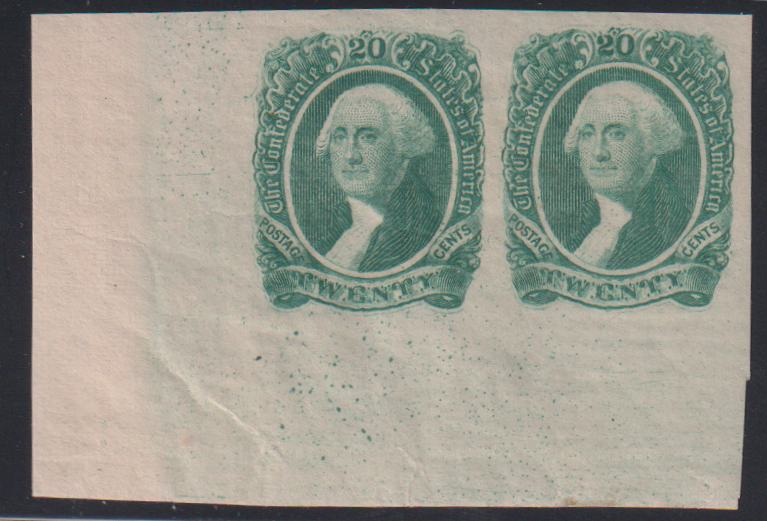 US Confederates #13 XF LL wide sheet margin pair hinged shlight wrinkles left stamp
