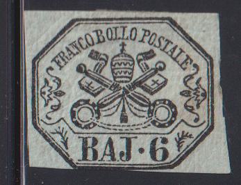 Italy and Italian Area - Roman States #7 Hinged Fresh OG 3 large margins just touched at bottom owners handstamp on back Cat Value: $975