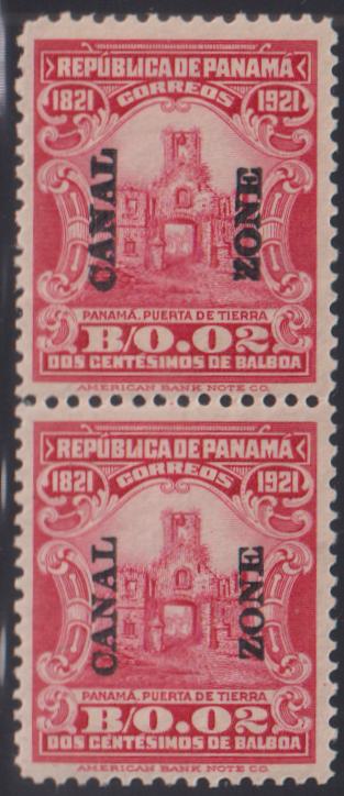 US Possessions - Canal Zone #61/61b LH/NH Mint VF vertical pair top stamp double overprint aps cert siegel sales 900 to 1300 only ten pains exist Cat Value: $900++