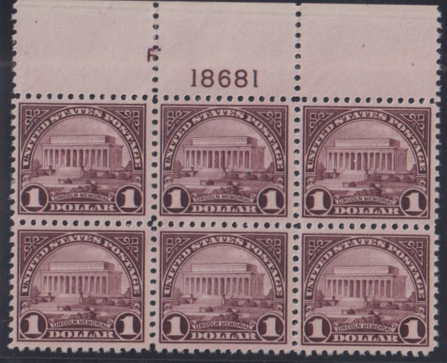 US Modern #571 NH F - VF top plate block few light natural gum skips pristine Cat Value: $525