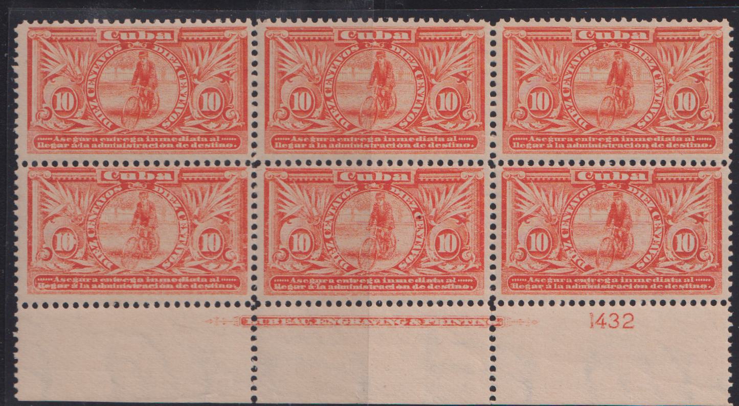 US Possessions - Cuba #E3 NH F - VF Peistine Plate bloack #1432 Left row of perfs...