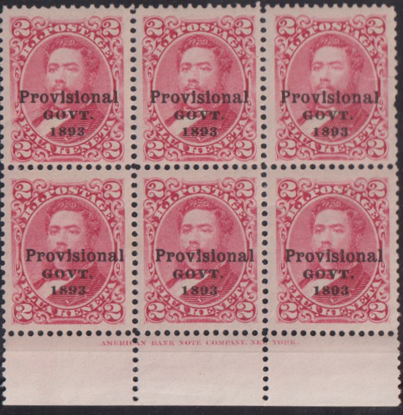 US Possessions - Hawaii #66 NH Mint F - VF Lower imprint block UR stamp small tear natural gum skips Cat Value: $22.50+