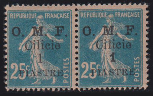 French Colonies and French Area - Cilicia #Yv122 NH Mint F - VF small 1 in pair with normal Yv 92b Cat Value: Yvert €39 as single