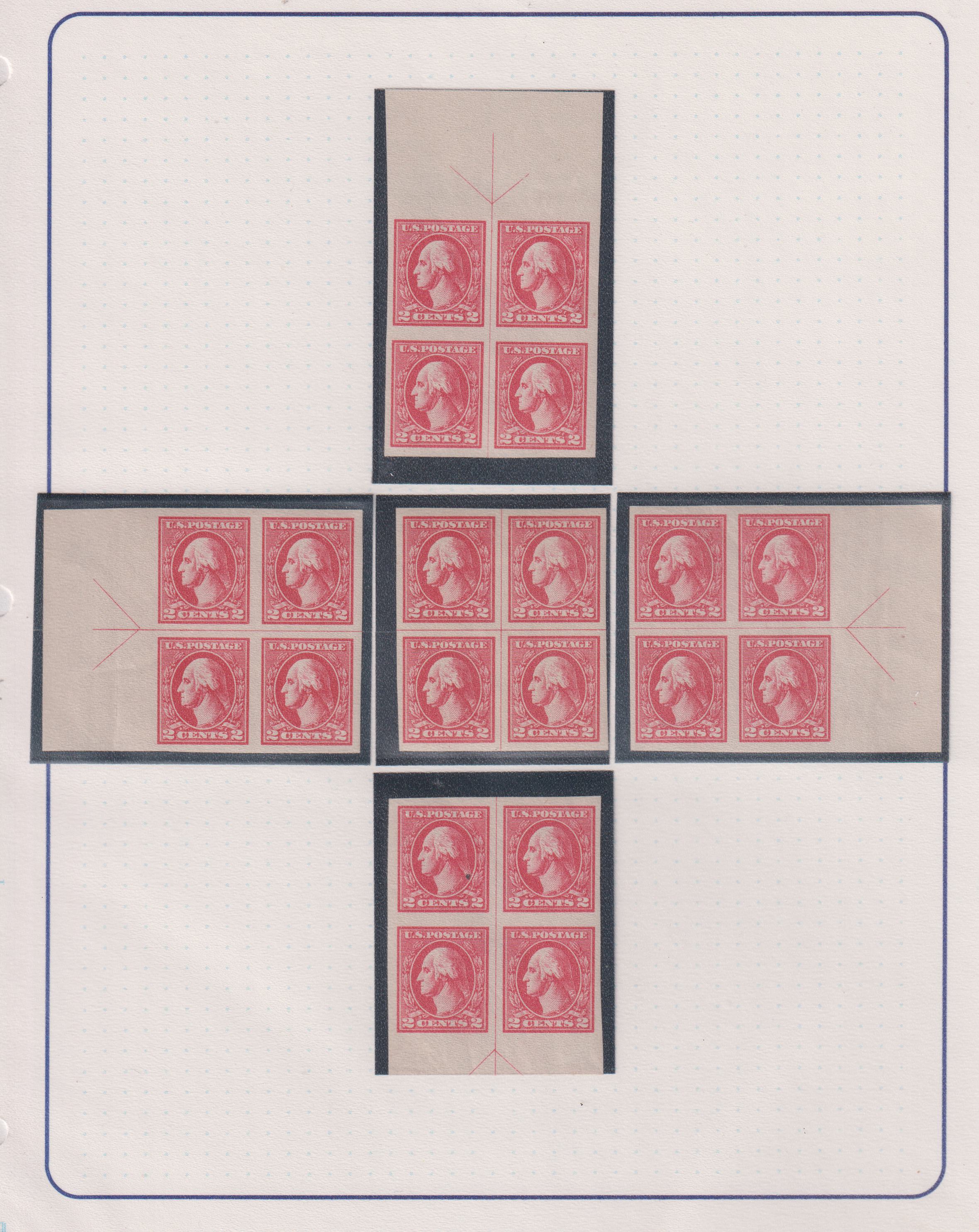 US Washington - Franklin #534a LH VF - XF 2c Carmine Rose Type IV Set of 4 arrow blocks plus center line block Cat Value: $1220