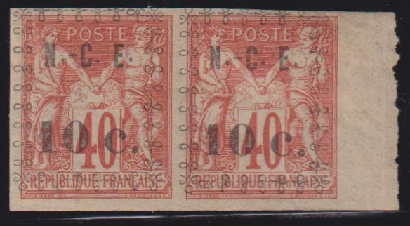 Countries - N- Z - New Caledonia #11 Hinged Mint VF - XF Margin pair Cat Value: $90 as single