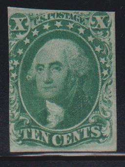 US Classics #15 Hinged Mint F Unused, 2 1/2 margins, slight horiz. Crease at top, traces of OG despite PSAG no gum cert Cat Value: $1800 as NG (No Gum)