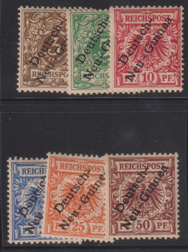 German Colonies - New Guinea #Mi1-6 Hinged F - VF 5 diagnol crease cv22.5 Mi 1-6 Cat Value: Michel €100 Scott: $80.25