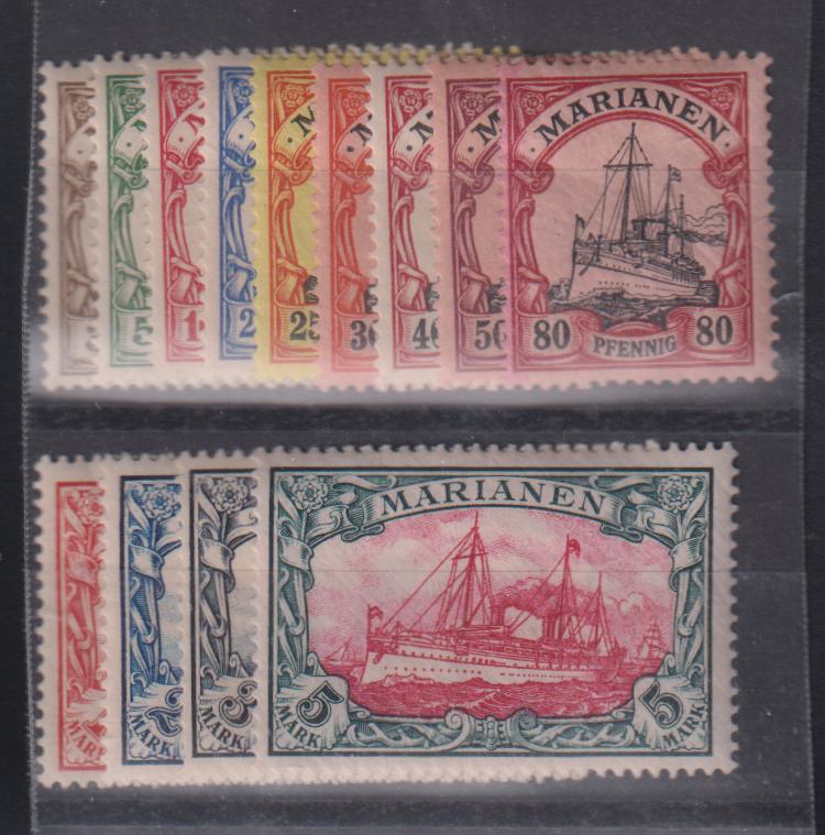 German Colonies - Mariana Islands #Mi17-29 Hinged F - VF No WM Cat Value: Michel €240 Scott: $169.60
