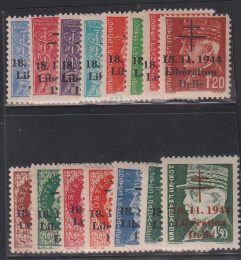 French Colonies and French Area - Delle Liberation Overprints #YvYv 1-15 LH Mint F - VF Delle Cat Value: Yvert €355