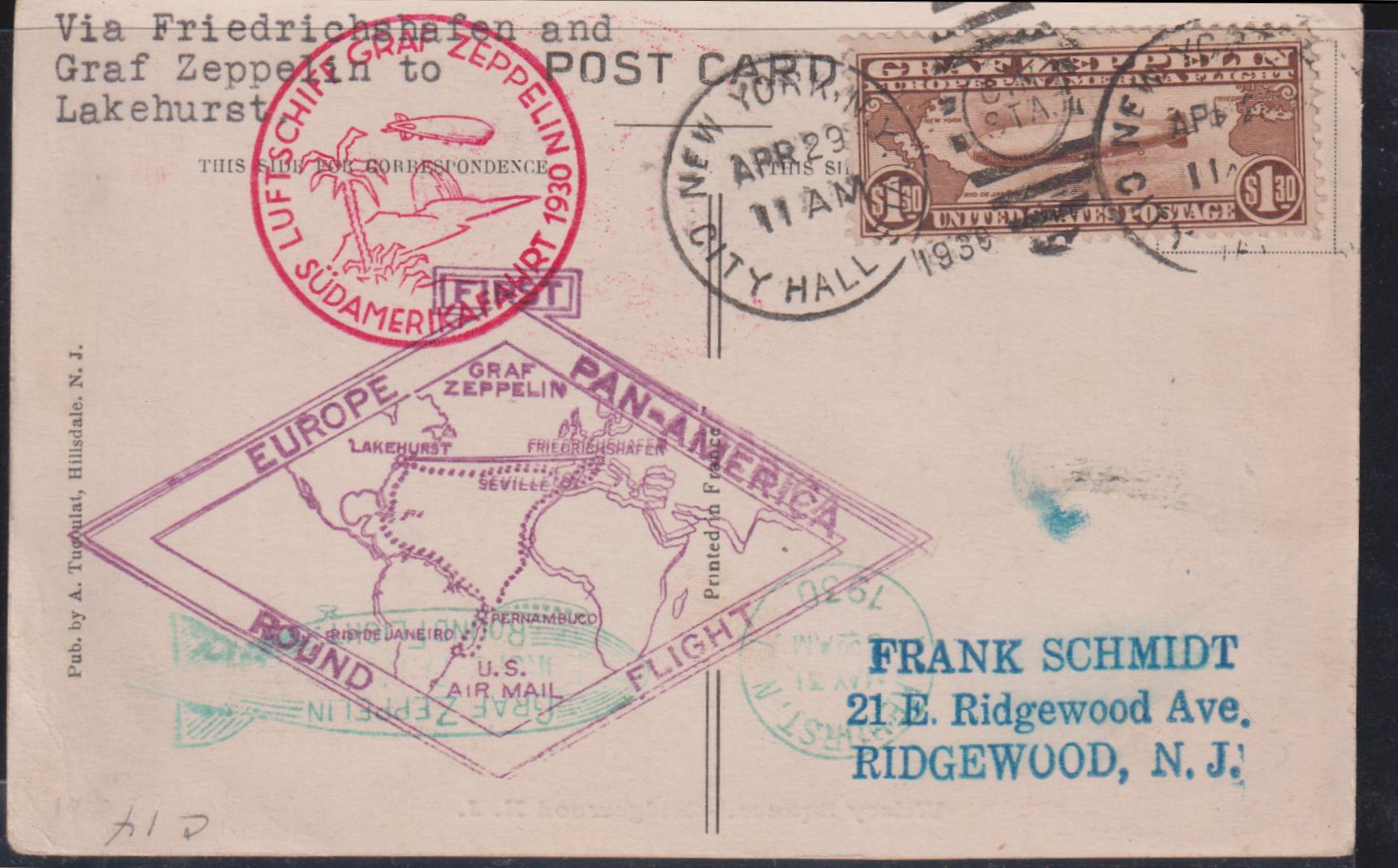 US Airmails #C14 VF Apr 29, 1930 on Ridgewood, NJ PPC VF