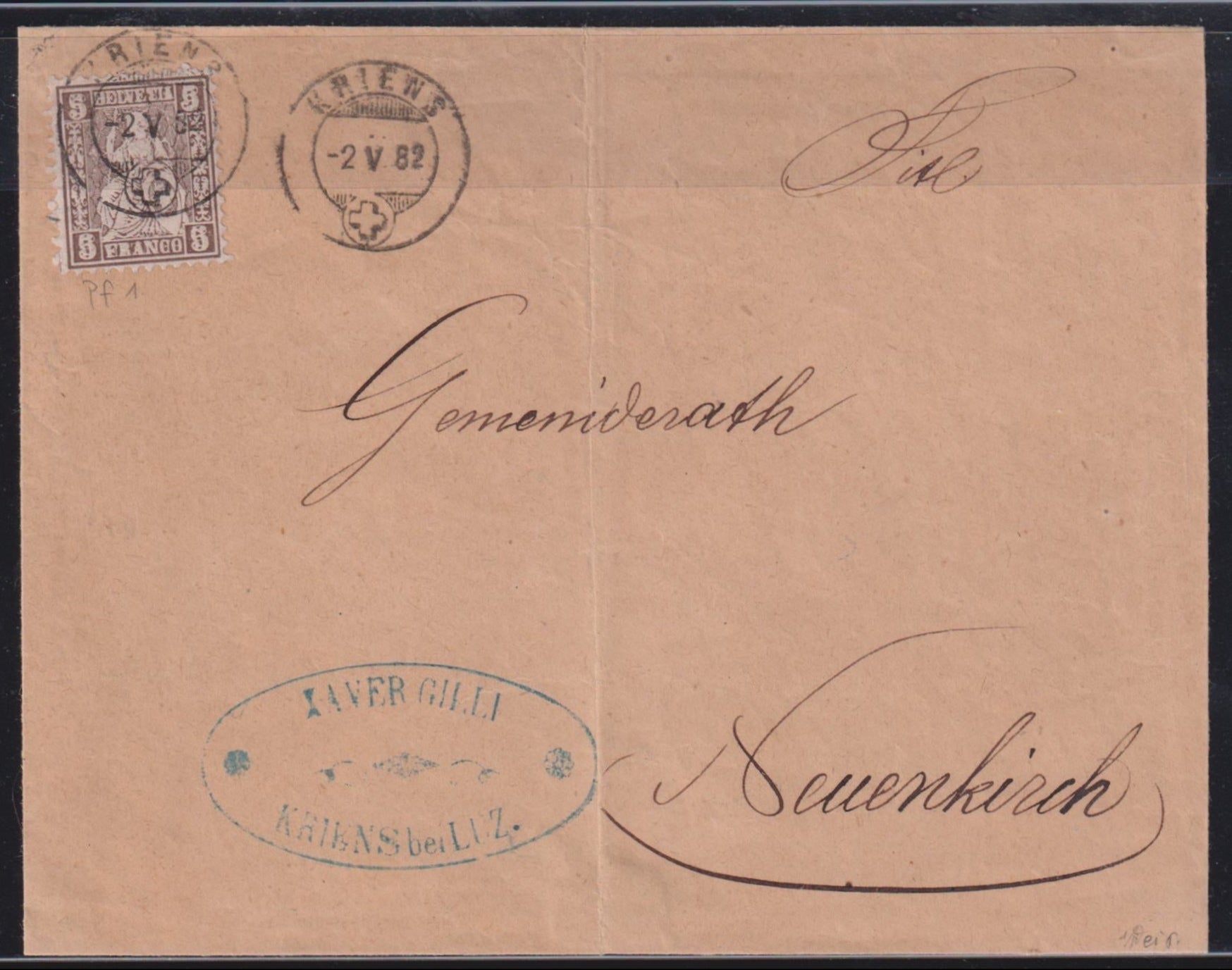 Switzerland 1882 #61a Double Embossing on cover with Von Der Weid Certificate