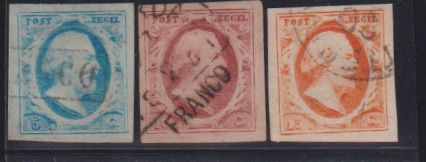 Netherlands and Colonies #1-3 Used XF nice 4 margins 3 signed Cat Value: $192.50
