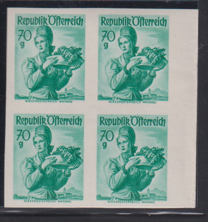 Austria #533 NH Mint Imperf block of 4 white gum not priced sparetly Mi 906U Cat Value: ANK: €400