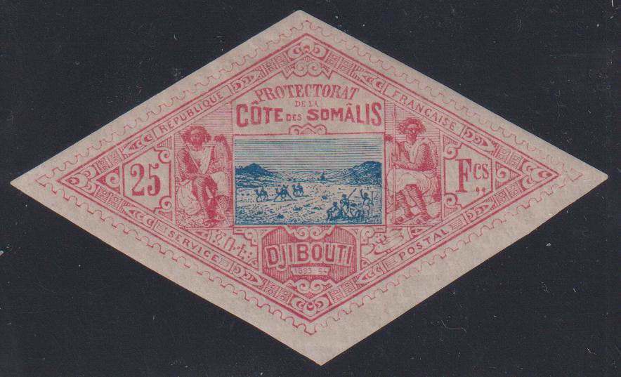 Countries - N- Z - Somali Coast #21 Hinged Mint 25fr key value to set jumbo margin Cat Value: $100