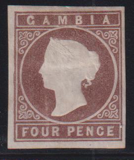 British Area A- M - Gambia #3 Hinged Mint VF great appearance - small flts trivial thinning...