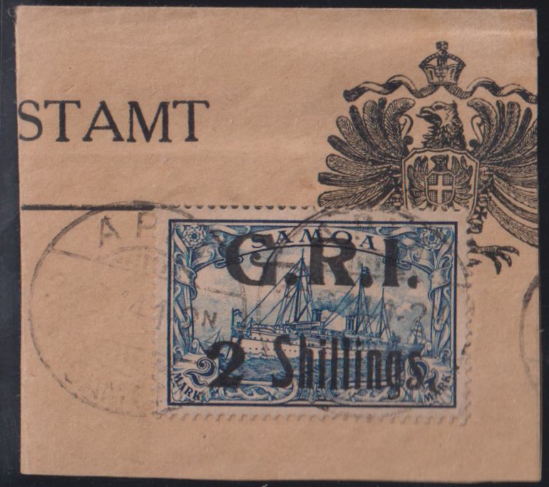British Area N- Z - Samoa #111 Used F - VF 2 sh used on peice apia cancel new prandon cert Cat Value: $3500
