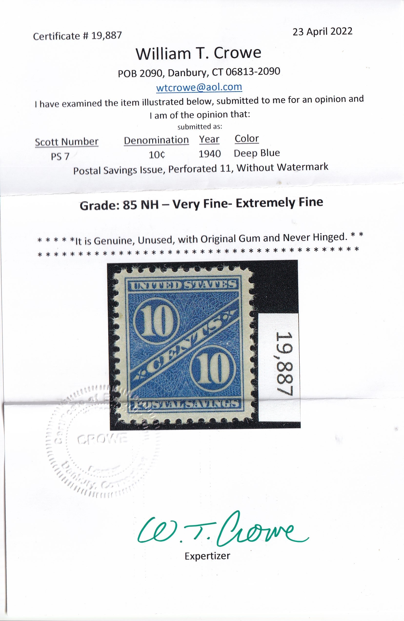 US Savings Stamps #PS7 NH Mint VF - XF Natural gum skips not noted on Crowe cert...