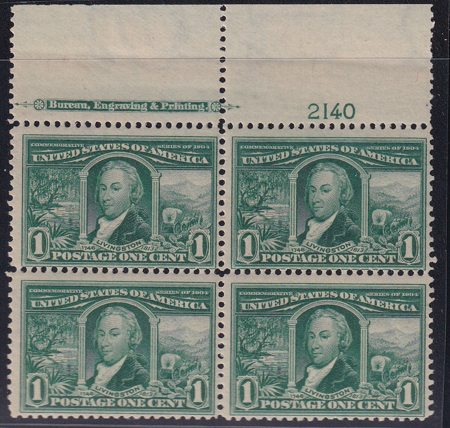 US Bureau and Regular Issues #323 NH Mint F Top Pl block of 4 Cat Value: $160