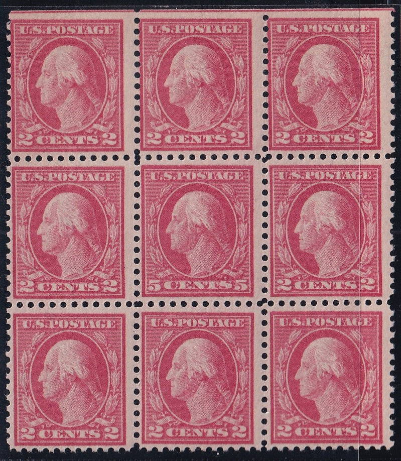 US Washington - Franklin #505 Hinged Mint F+ Error very LH block hinged at top Cat Value:...