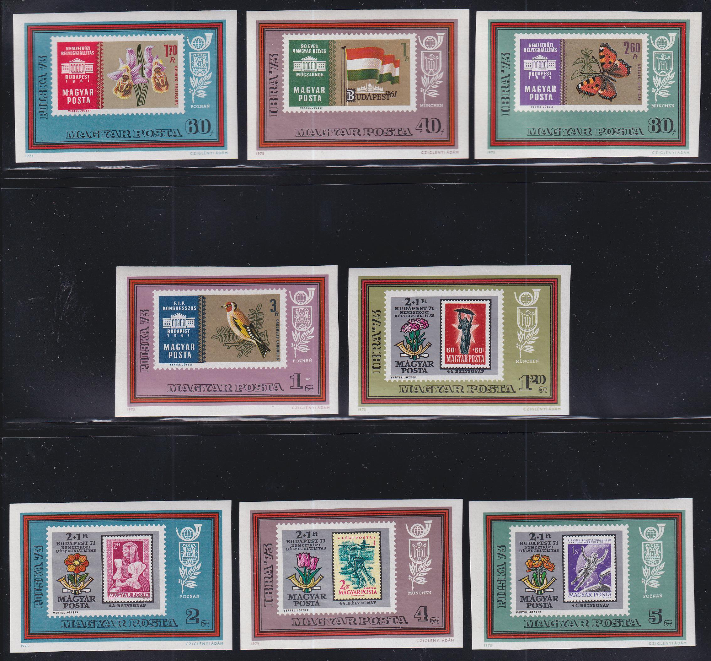 Hungary 1973 Scott #2221-28 NH Imperfs, Stamp on Stamp, Bird, Butterfly