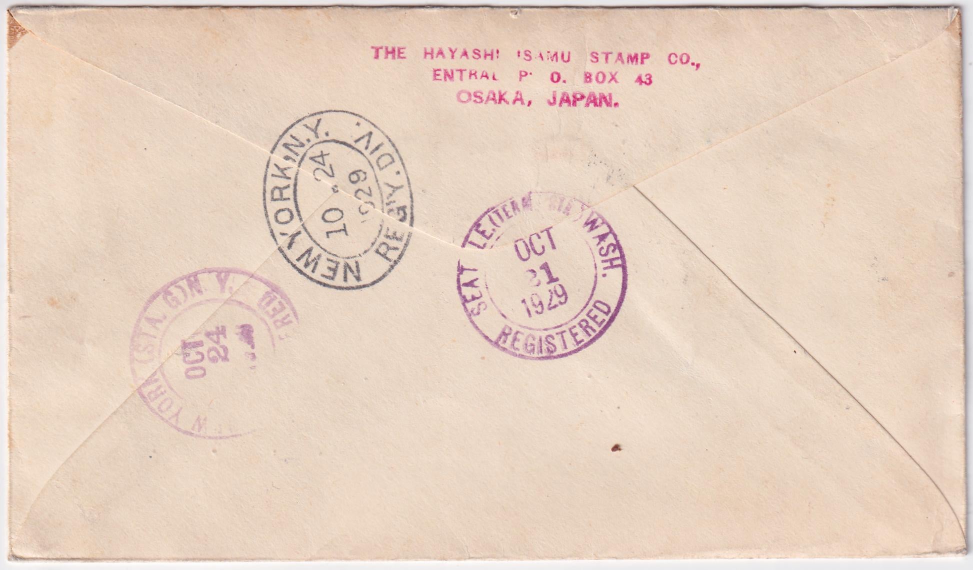 Japan 1929 Registered Airmail Cover to NY with C3, 5-7