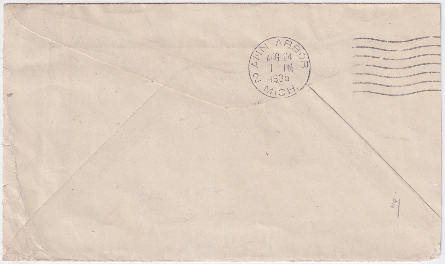 Russia 1935 (Aug 13) Cover with C25b , 15k, perf 14, and special Leningrad Physiological Congress Cancel. Addressed to professor at Dept. of Physiological Chemistry in US, forwarded and backstamped. S. €400 as per 14 on cover.
