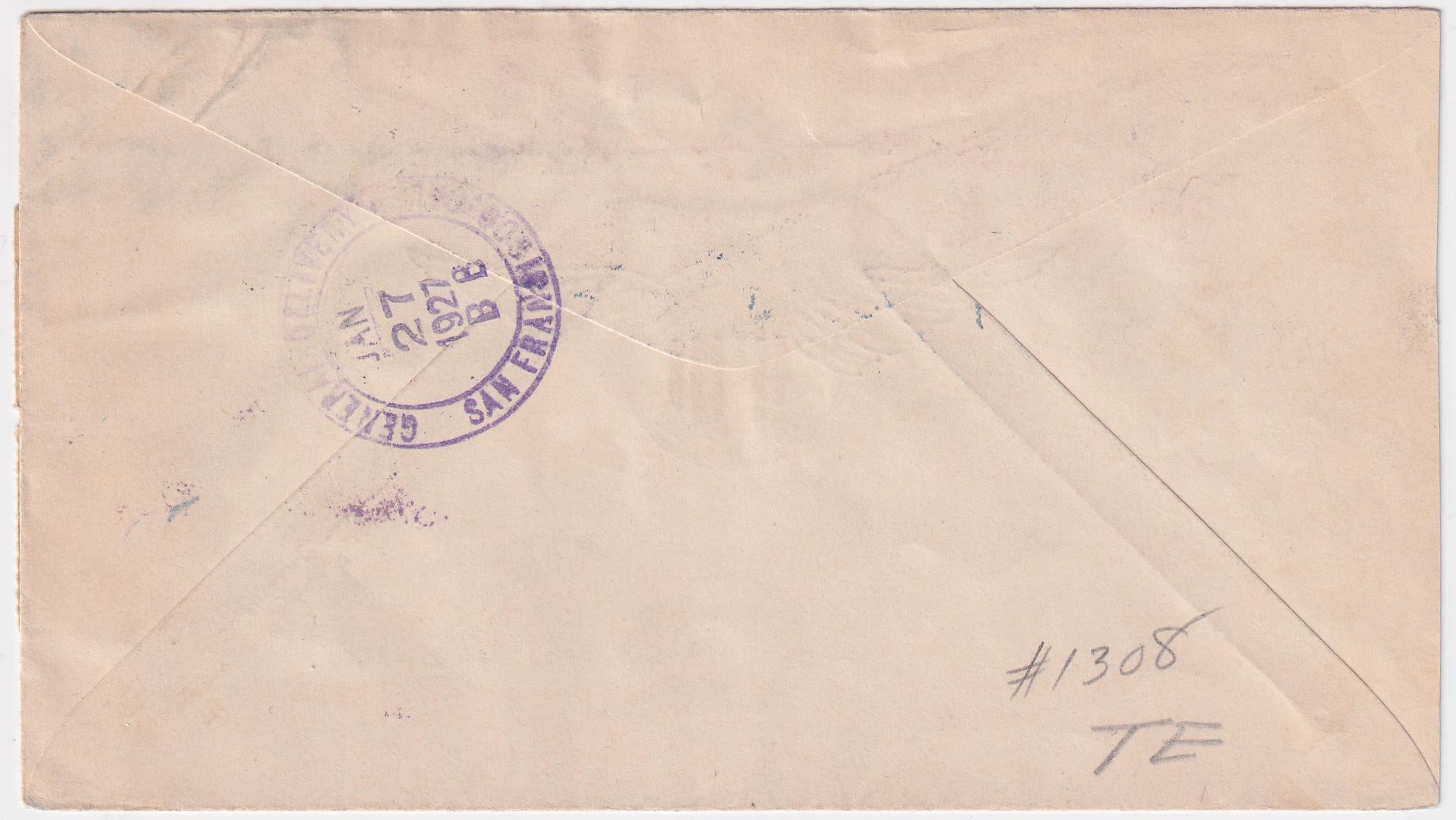 US 1927 (Jan 25) C9 FDC with Postage Dues, J32.Airmail cover sent to San Francisco.